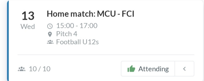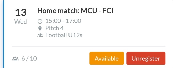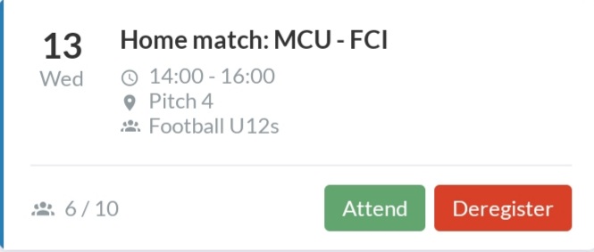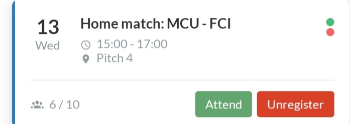 Example: Register/Unregister for the activity. The blue colour indicates match. 6 are registered, 10 is max number