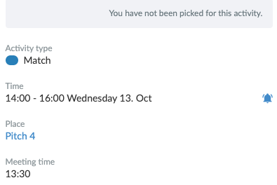 Example: Register for availability or unregister from the activity. The blue colour indicates match.