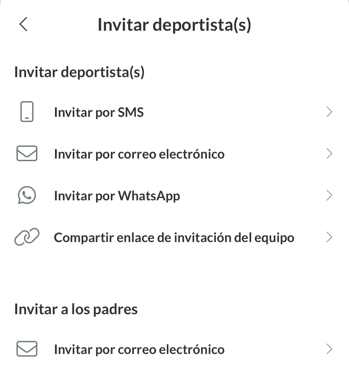- Compartir el enlace de invitación del equipo: Podrás copiar el enlace de invitación que aparece en la pantalla, y compartir en tu grupo de WhatsApp, o enviárselo a los miembros del equipo de la manera que te resulte mas cómoda.